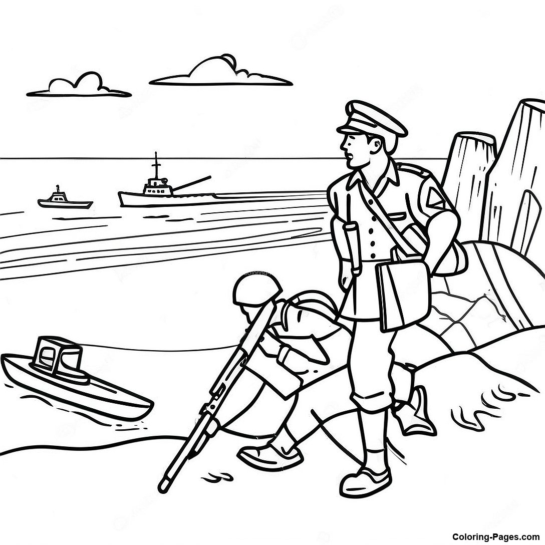 Download Printable PDF of D Day Beach Assault Coloring Page