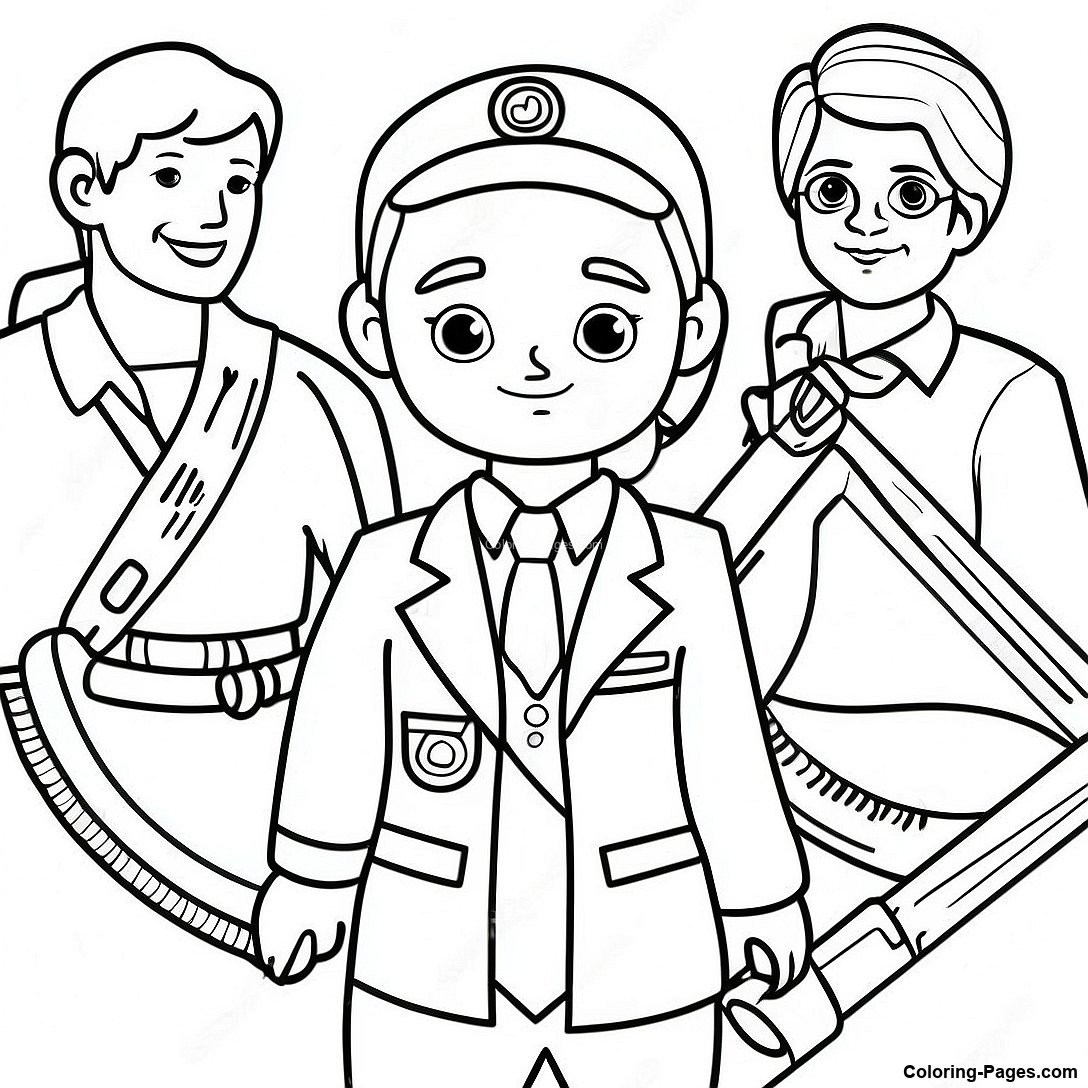 Download Printable PDF of Diverse Career Day Characters Coloring Page