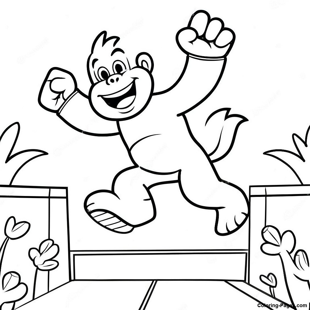 Download Printable PDF of Donkey Kong Jumping Over Obstacles Coloring Page