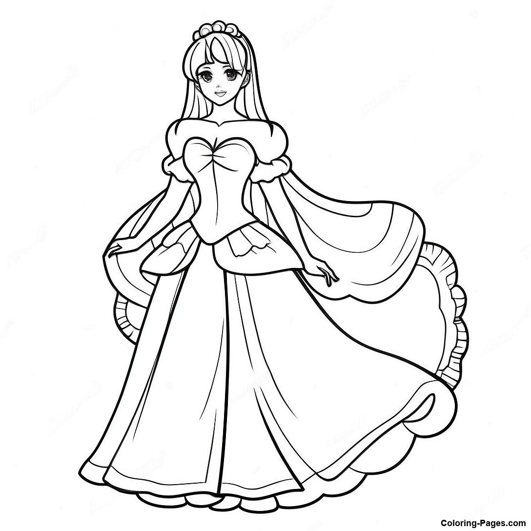 Download Printable PDF of Elegant Anime Princess In A Gown Coloring Page
