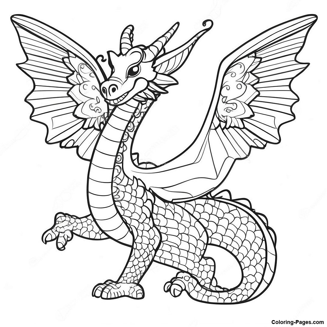 Elegant Dragon With Flowing Wings Coloring Page