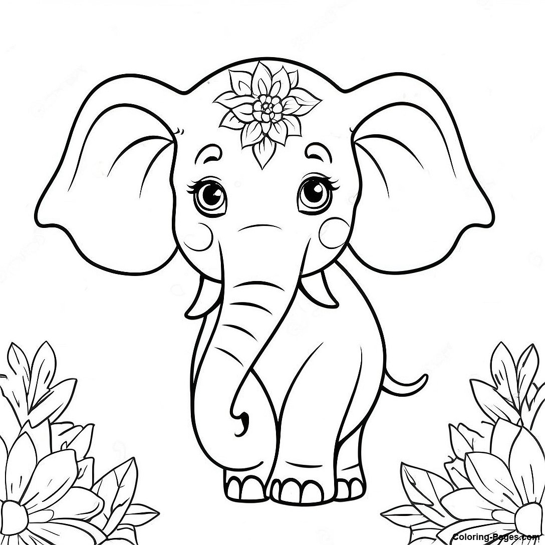 Download Printable PDF of Elegant Elephant With Flowers Coloring Page