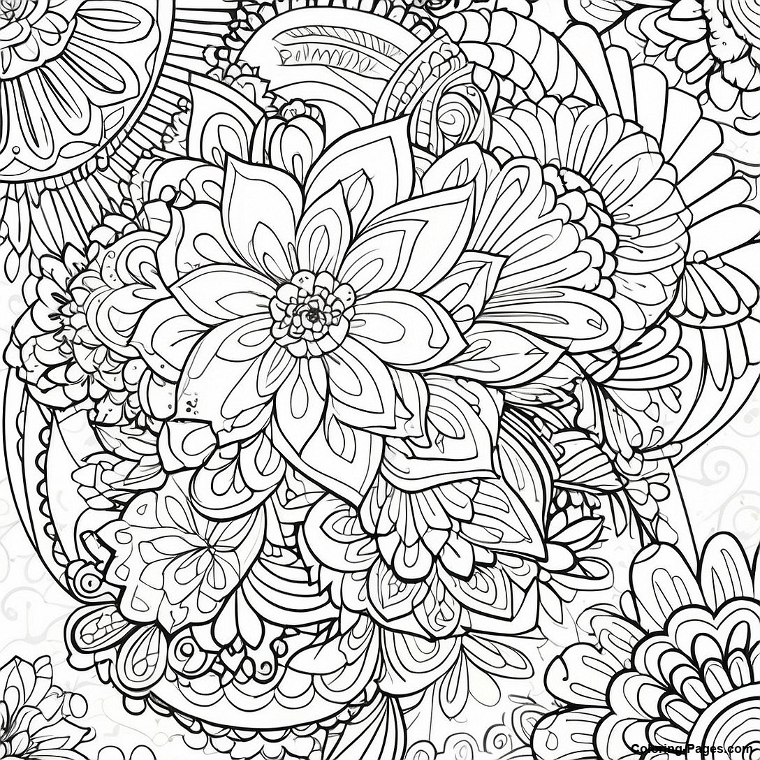 Download Printable PDF of Elegant Floral Mandala Coloring Page