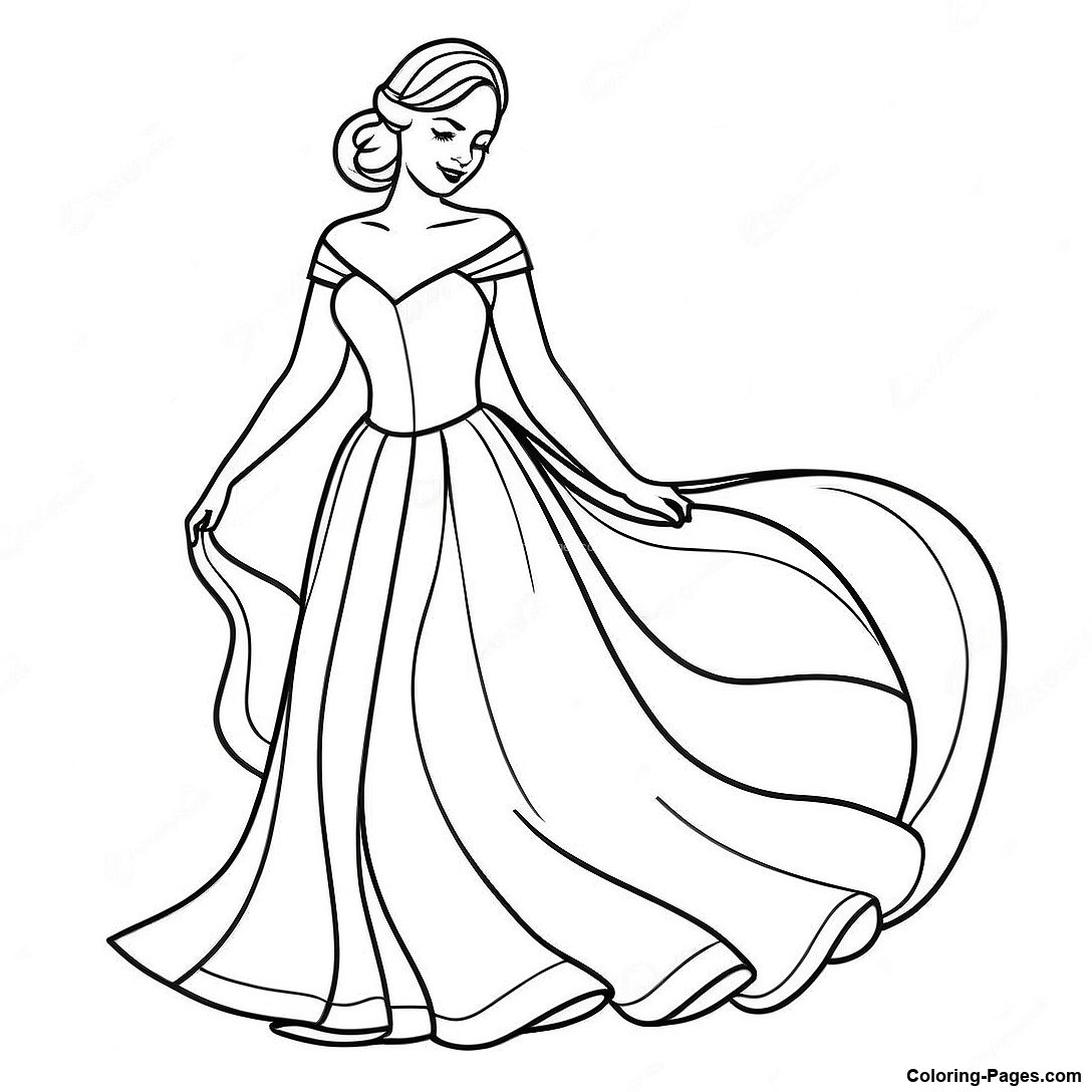 Elegant Girl In A Flowing Dress Coloring Page