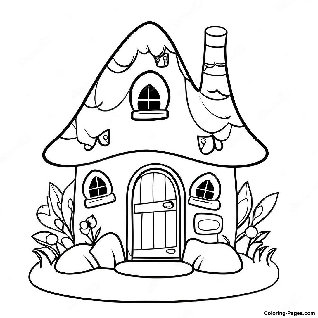 Download Printable PDF of Enchanted Fairy House With Sparkling Lights Coloring Page