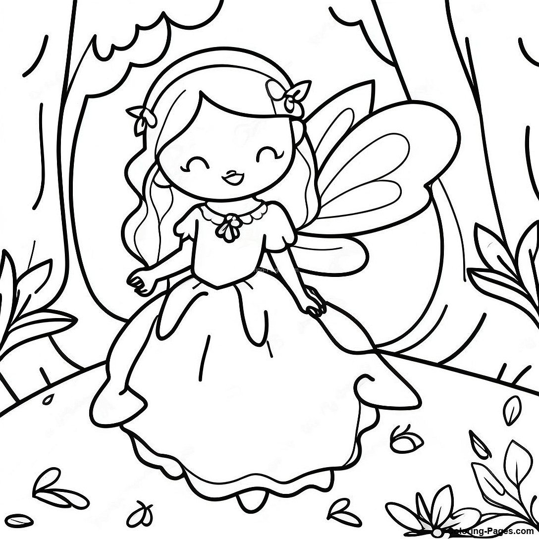 Download Printable PDF of Enchanted Fairy In A Forest Coloring Page