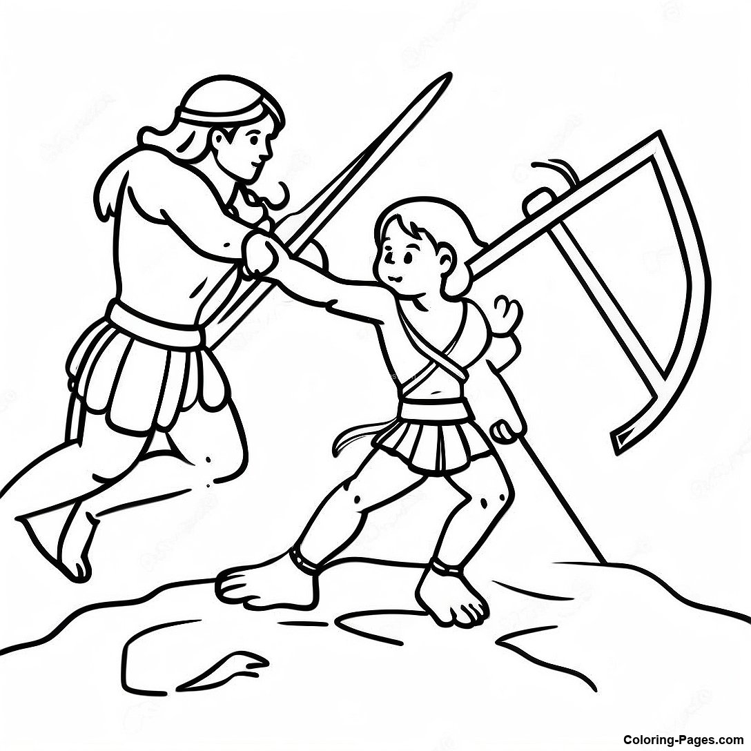 Download Printable PDF of Epic Battle Of David And Goliath Coloring Page