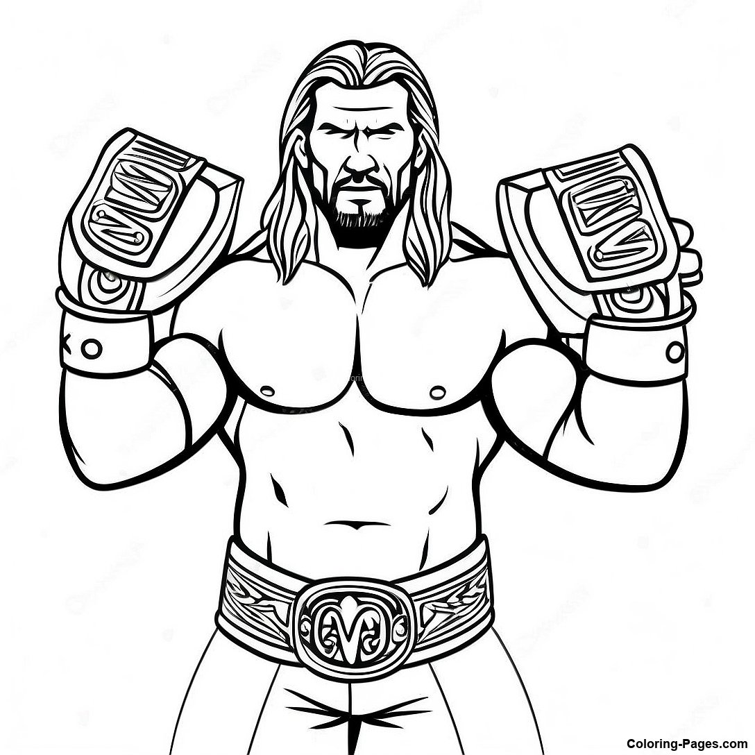 Epic Triple H Holding Two Belts Coloring Page