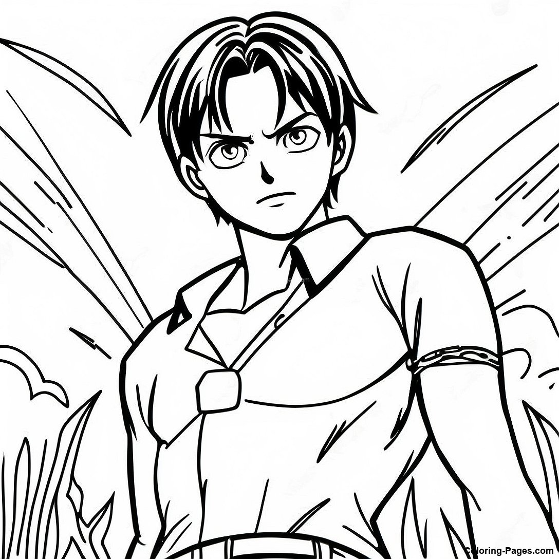 Download Printable PDF of Eren Yeager Battle Ready Coloring Page