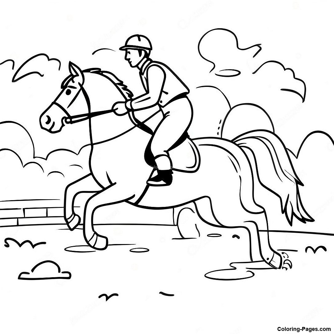 Download Printable PDF of Exciting Cross Country Jumping Scene Coloring Page