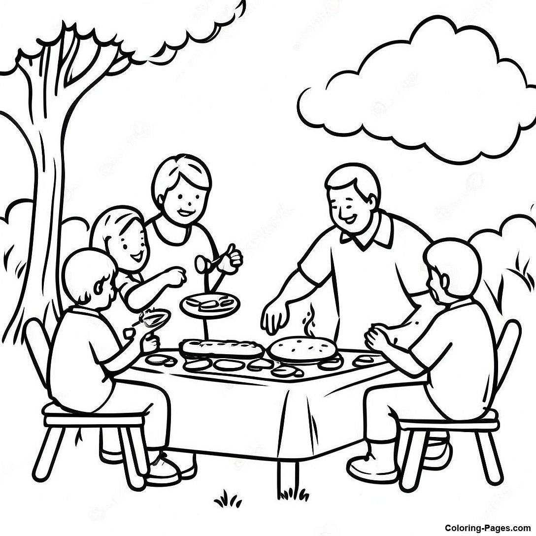 Download Printable PDF of Family Bbq Picnic Coloring Page