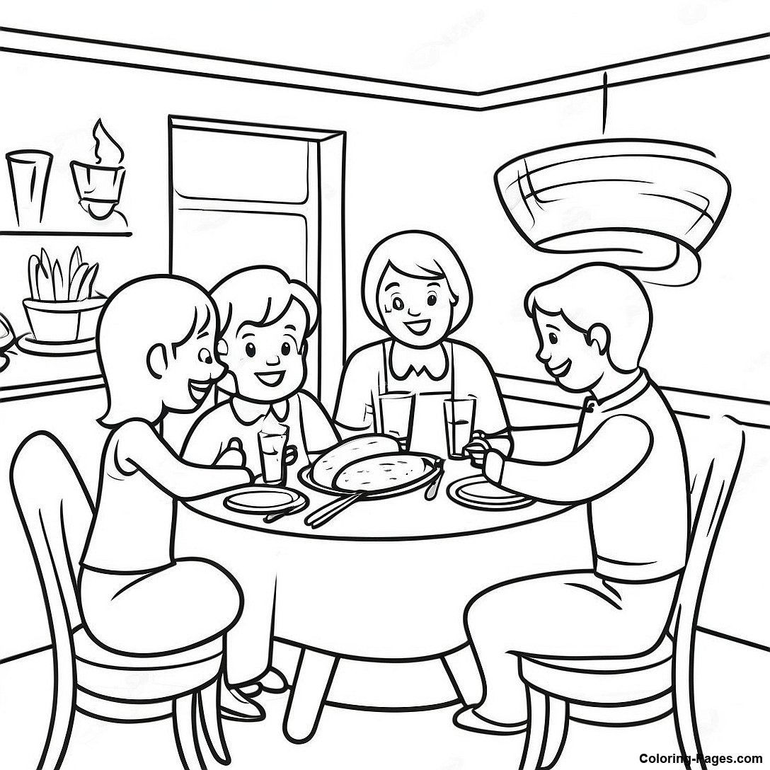 Download Printable PDF of Family-Friendly Restaurant Scene Coloring Page