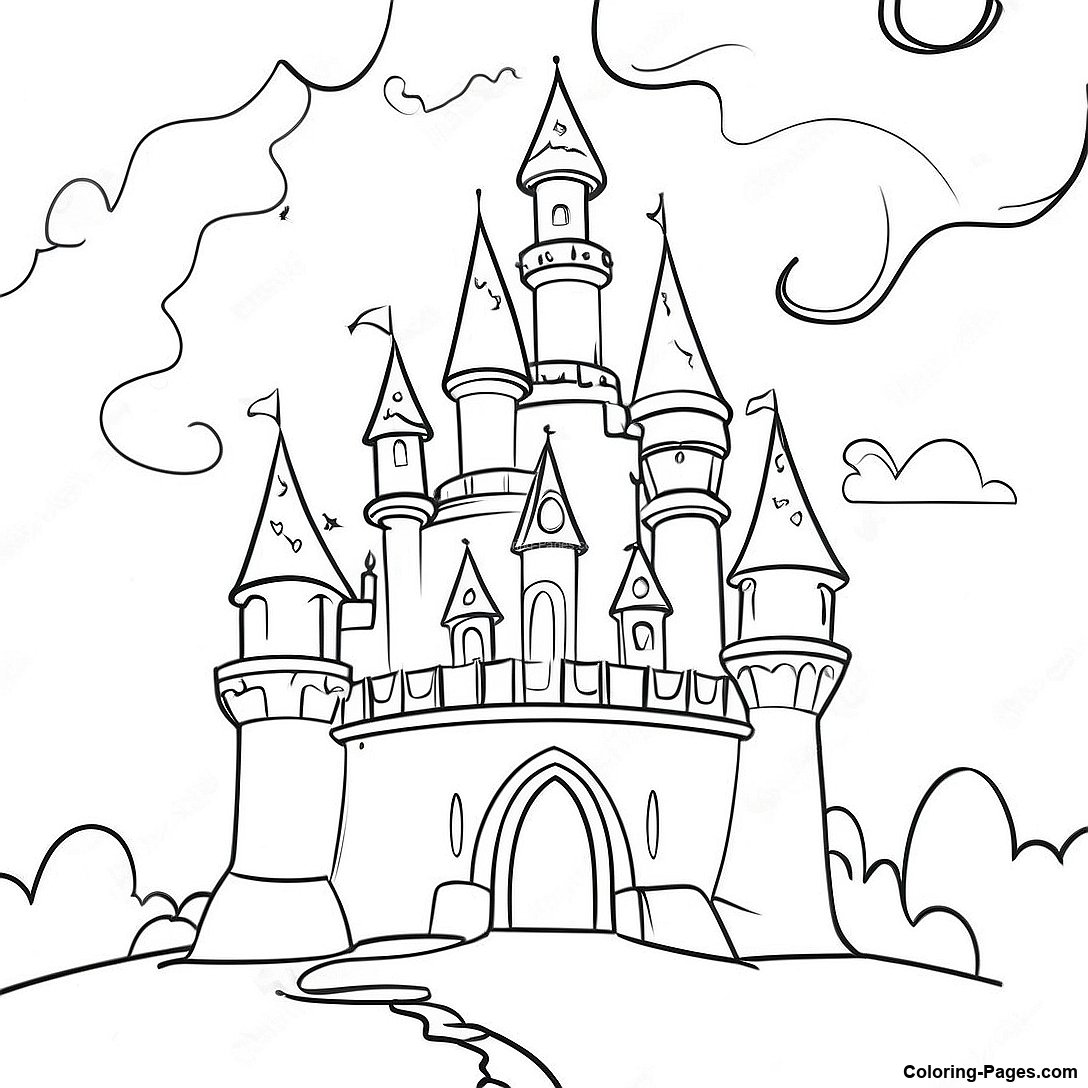 Elegant Sleeping Beauty in a Castle Coloring Page