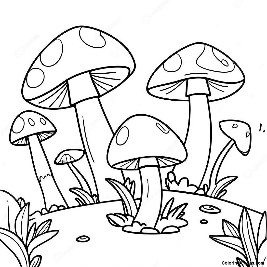 Download Printable PDF of Fantasy Mushroom Village Coloring Page