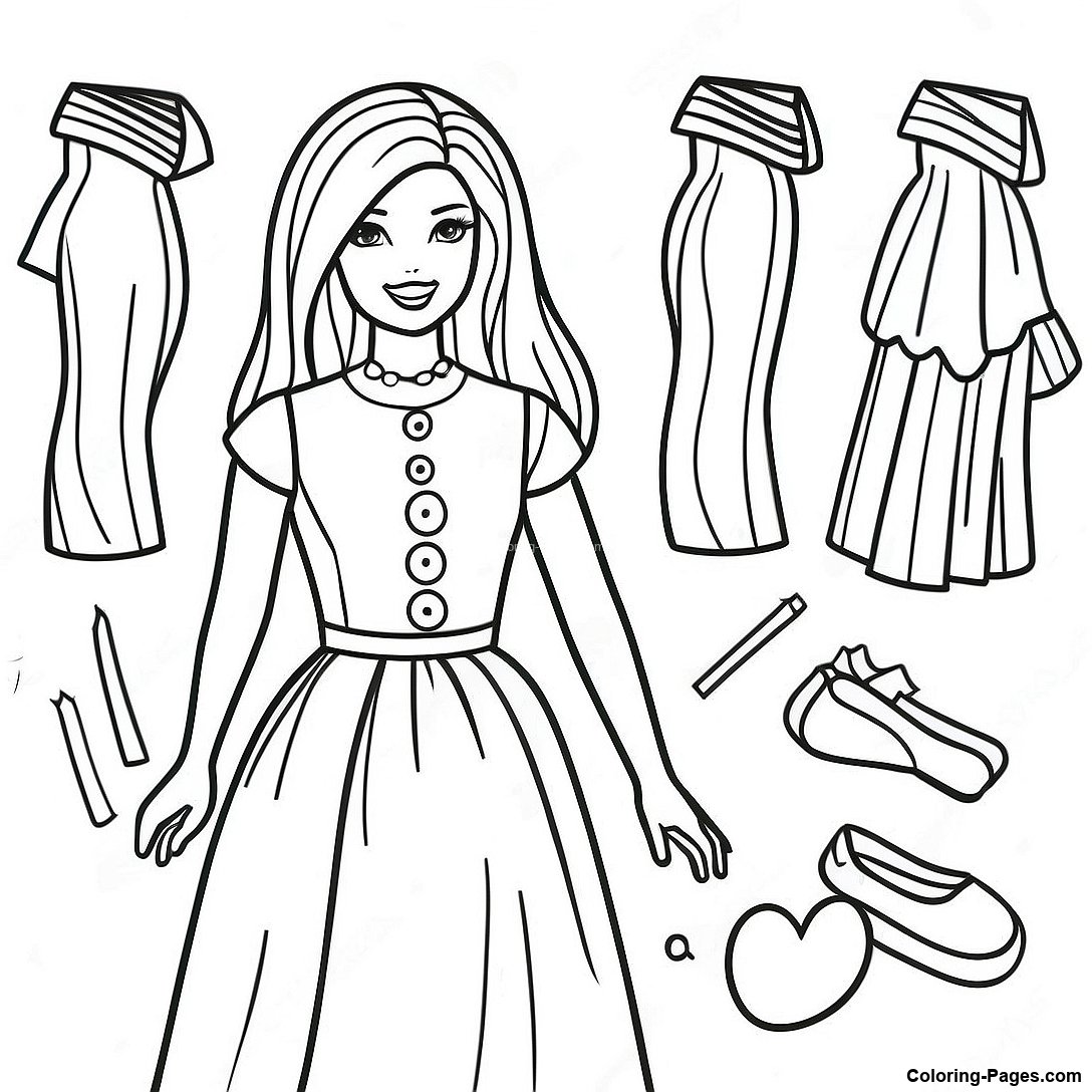 Elegant Barbie Dress Coloring Page