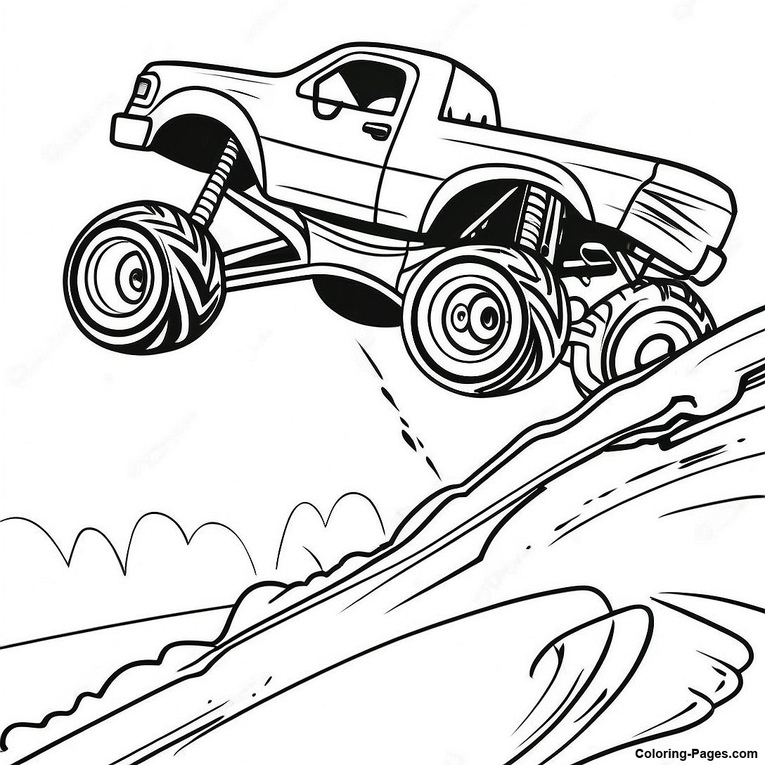 Monster Truck Jumping Over Obstacles Coloring Page