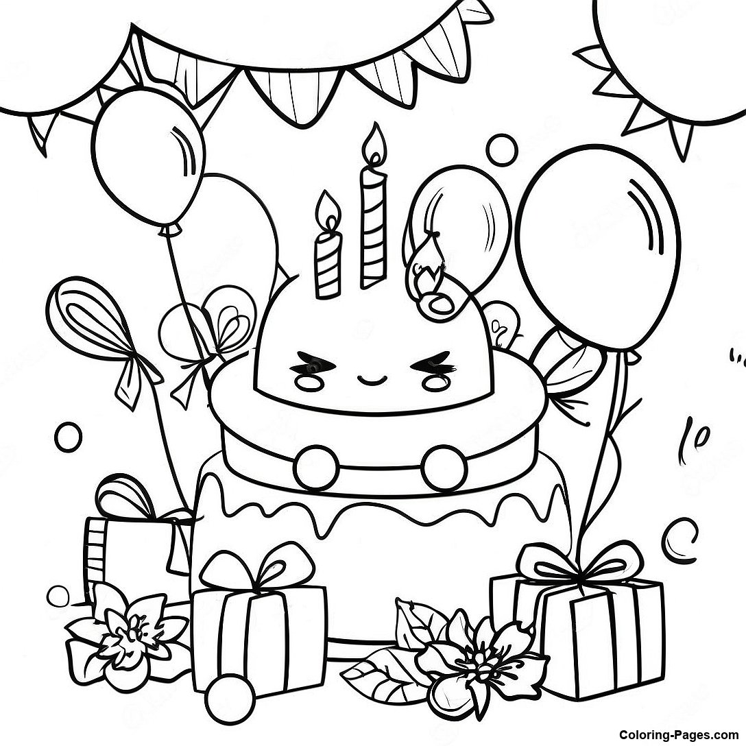 Download Printable PDF of Festive Birthday Party Coloring Page