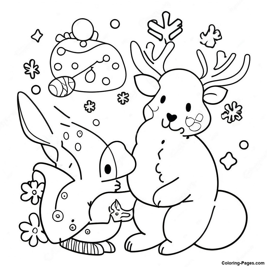 Festive Winter Animals Coloring Page
