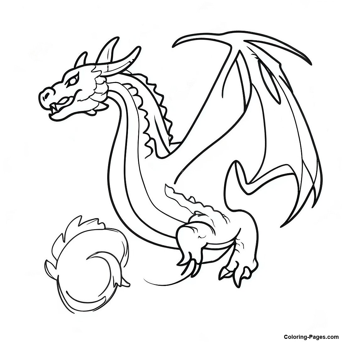 Download Printable PDF of Fierce Fire Dragon In Flight Coloring Page