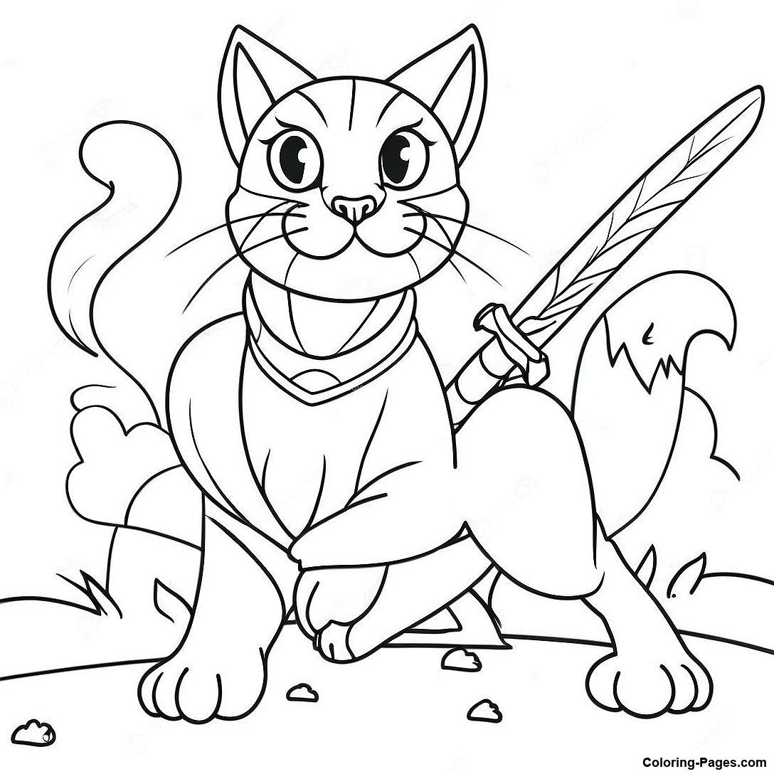 Fierce Warrior Cat In Battle Coloring Page