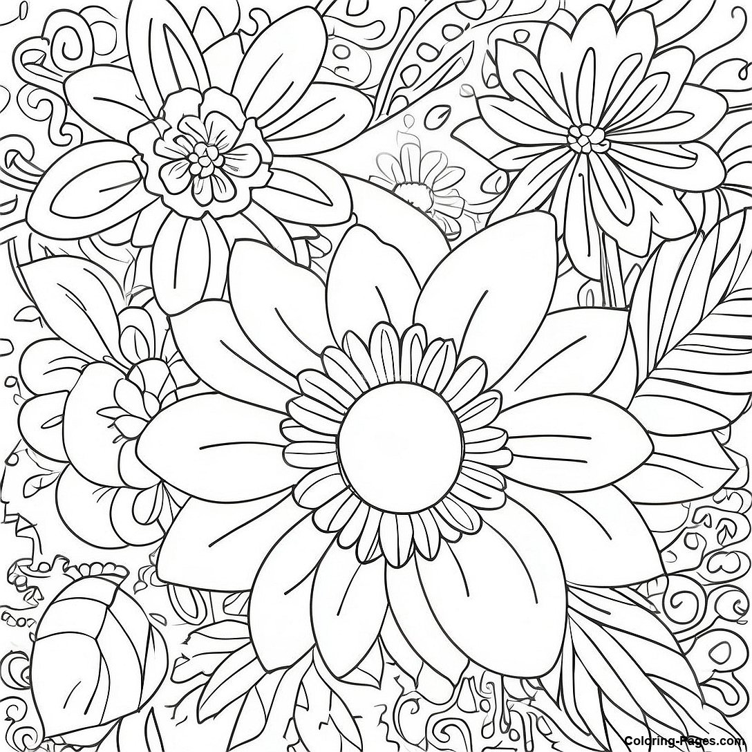 Download Printable PDF of Flower Aesthetic Coloring Page