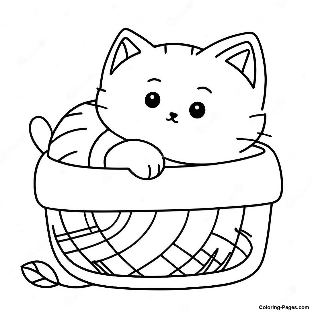 Fluffy Kitten Sleeping In A Basket Coloring Page