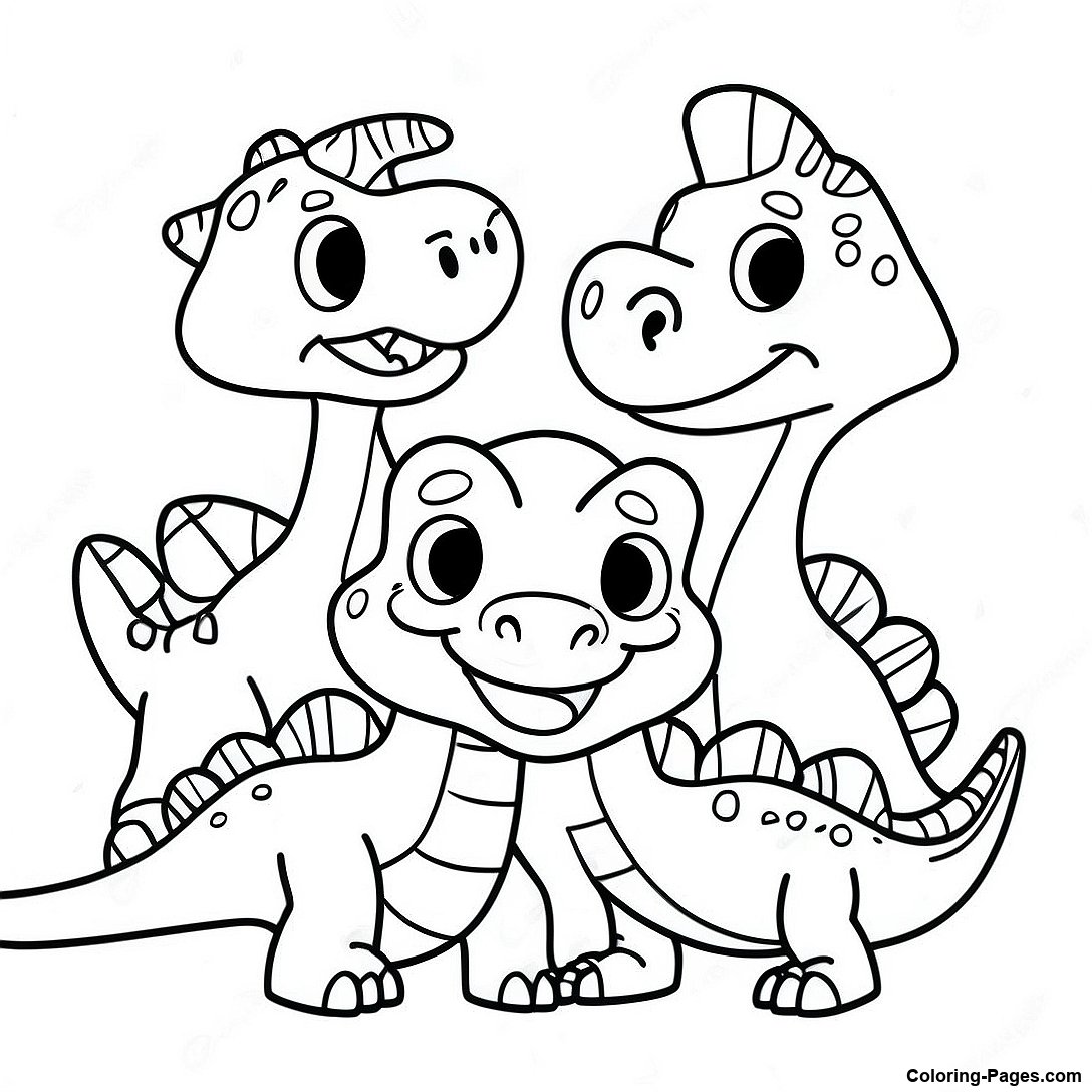 Download Printable PDF of Friendly Dinosaur Family Coloring Page