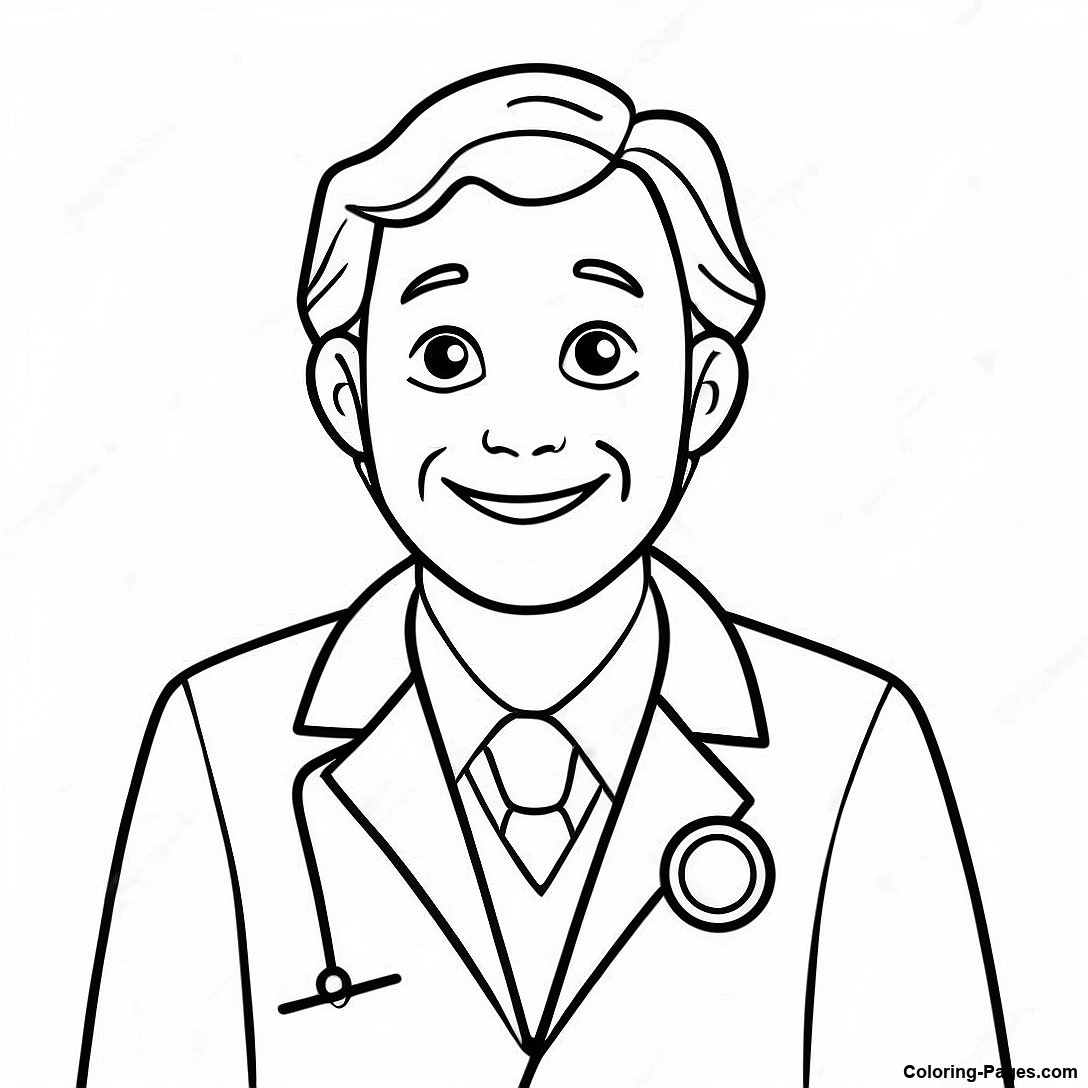 Download Printable PDF of Friendly Doctor With Stethoscope Coloring Page