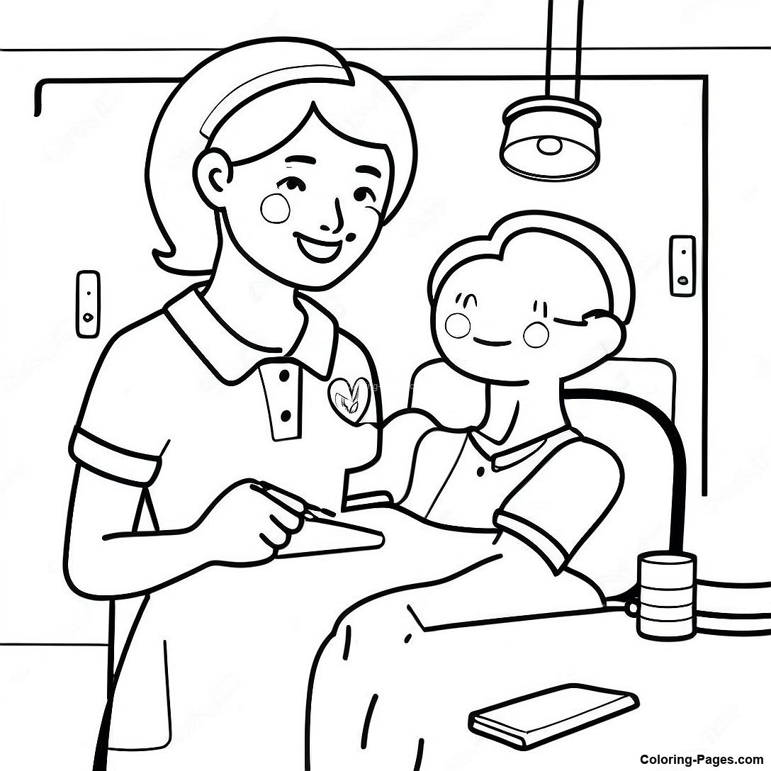 Download Printable PDF of Friendly Nurse Helping Patient Coloring Page
