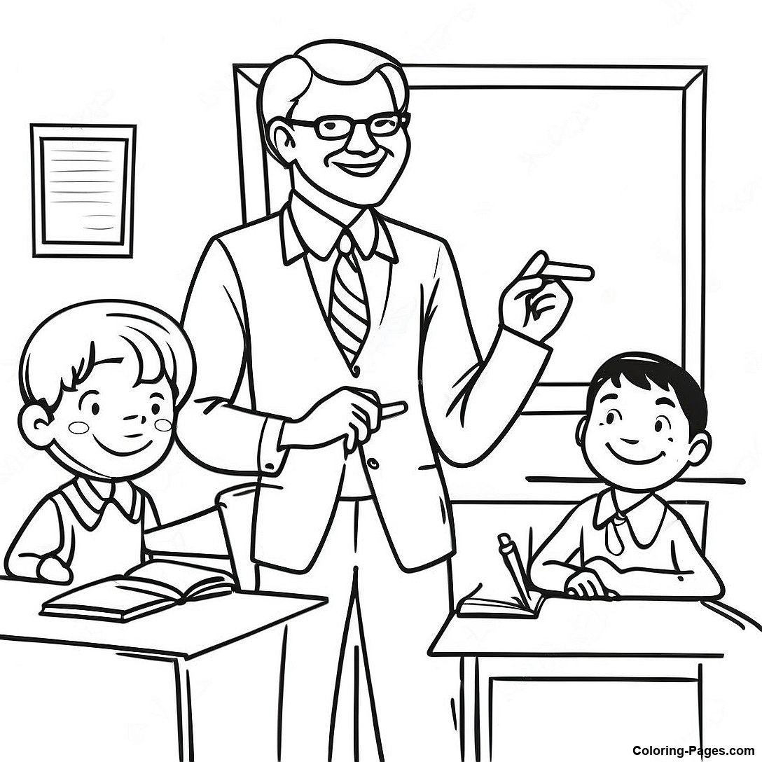 Download Printable PDF of Friendly Teacher With Students Coloring Page