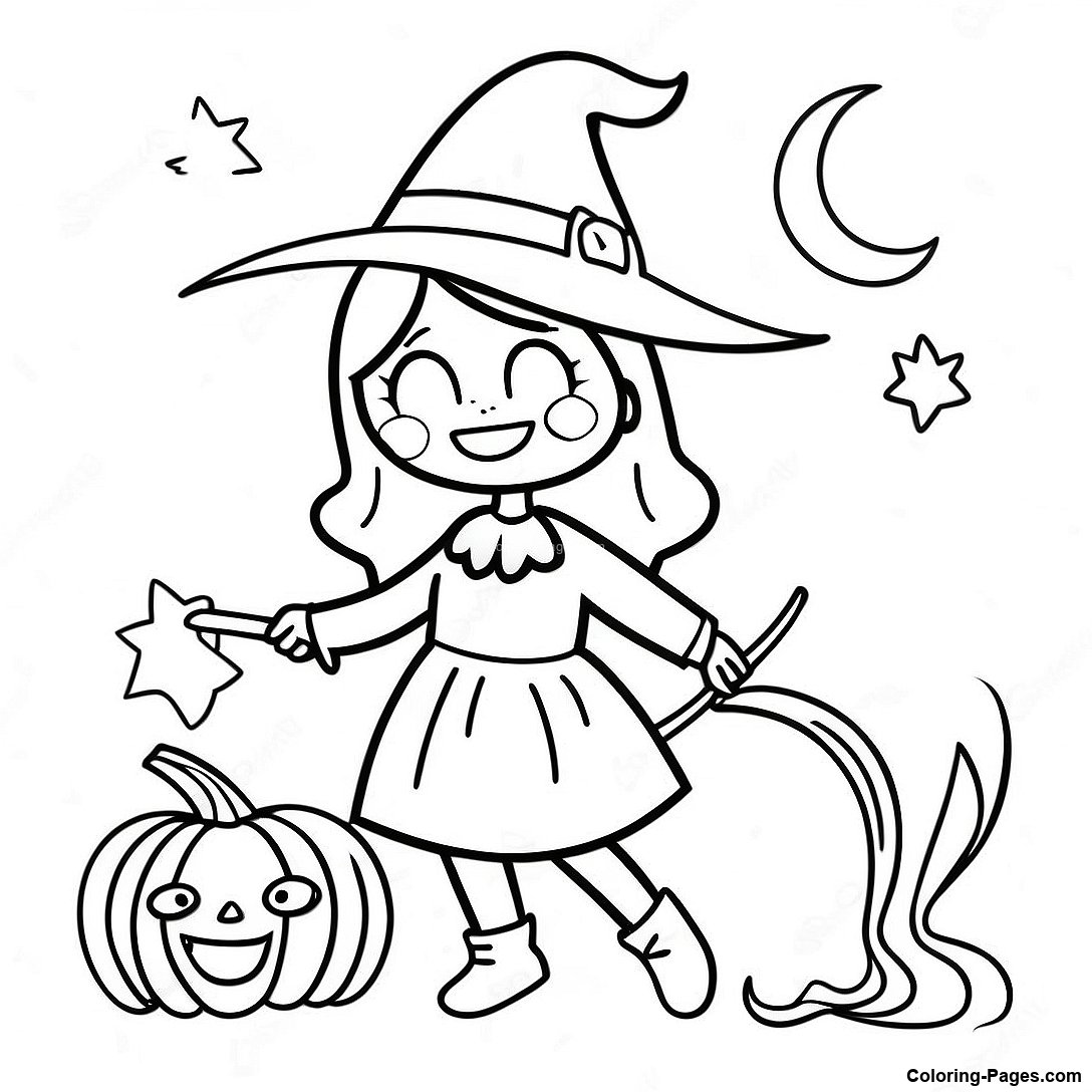 Download Printable PDF of Friendly Witch Trick Or Treat Coloring Page