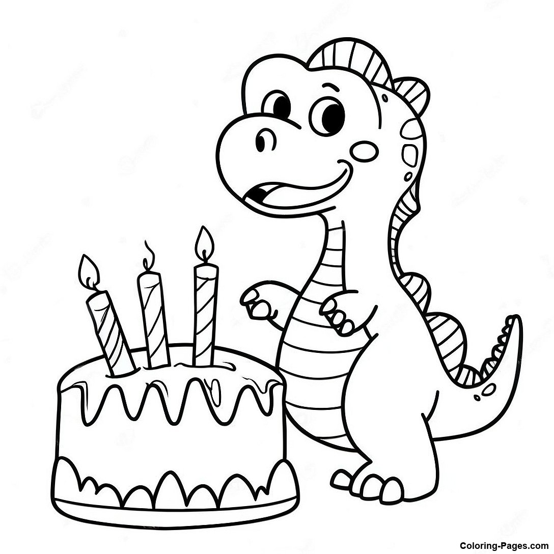 Funny Dinosaur Blowing Out Candles Coloring Page