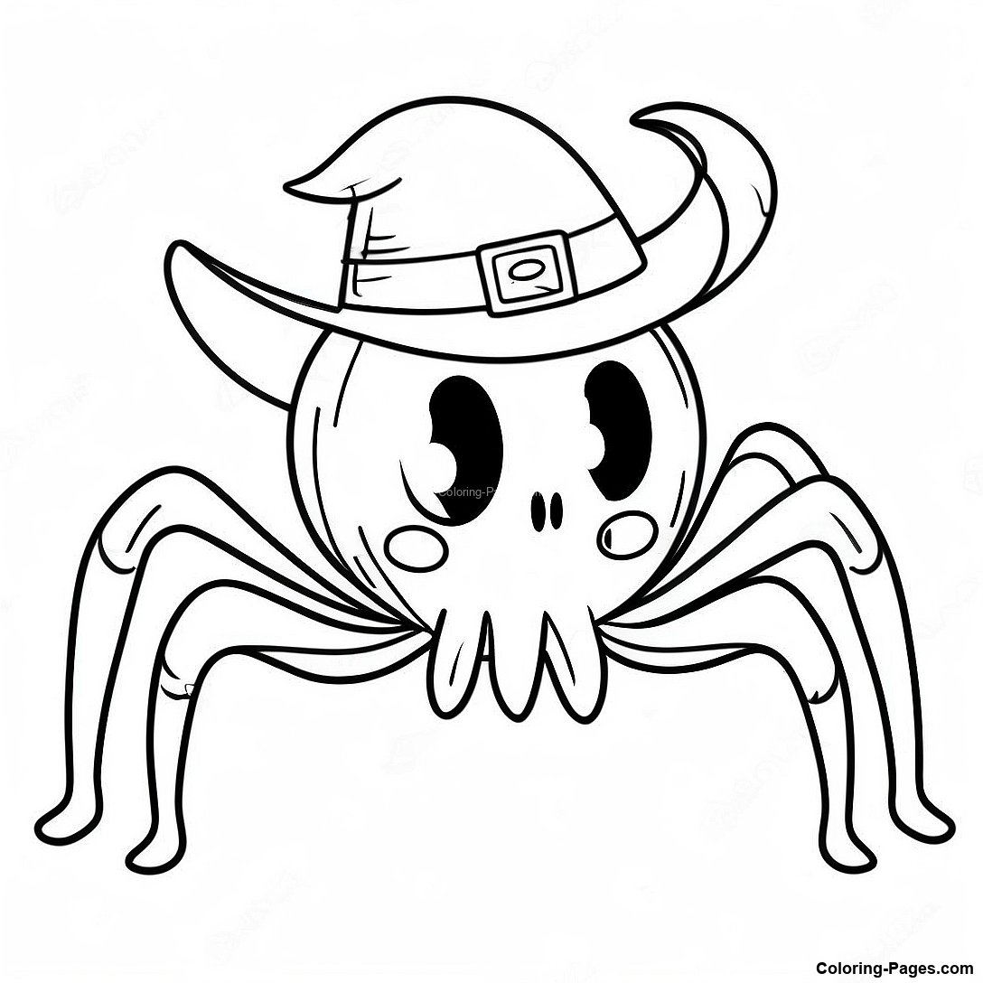 Download Printable PDF of Funny Halloween Spider With Hat Coloring Page