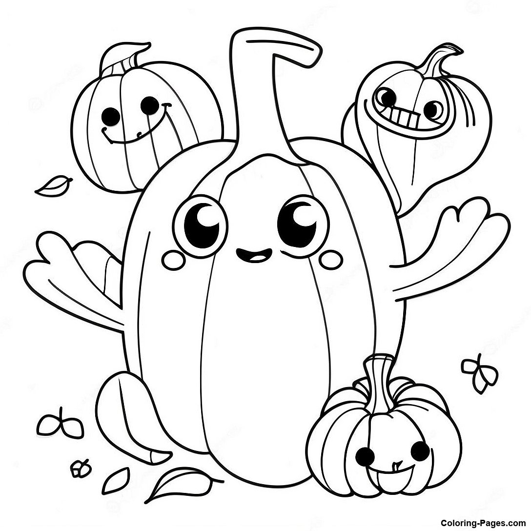Funny Pumpkin Characters Coloring Page