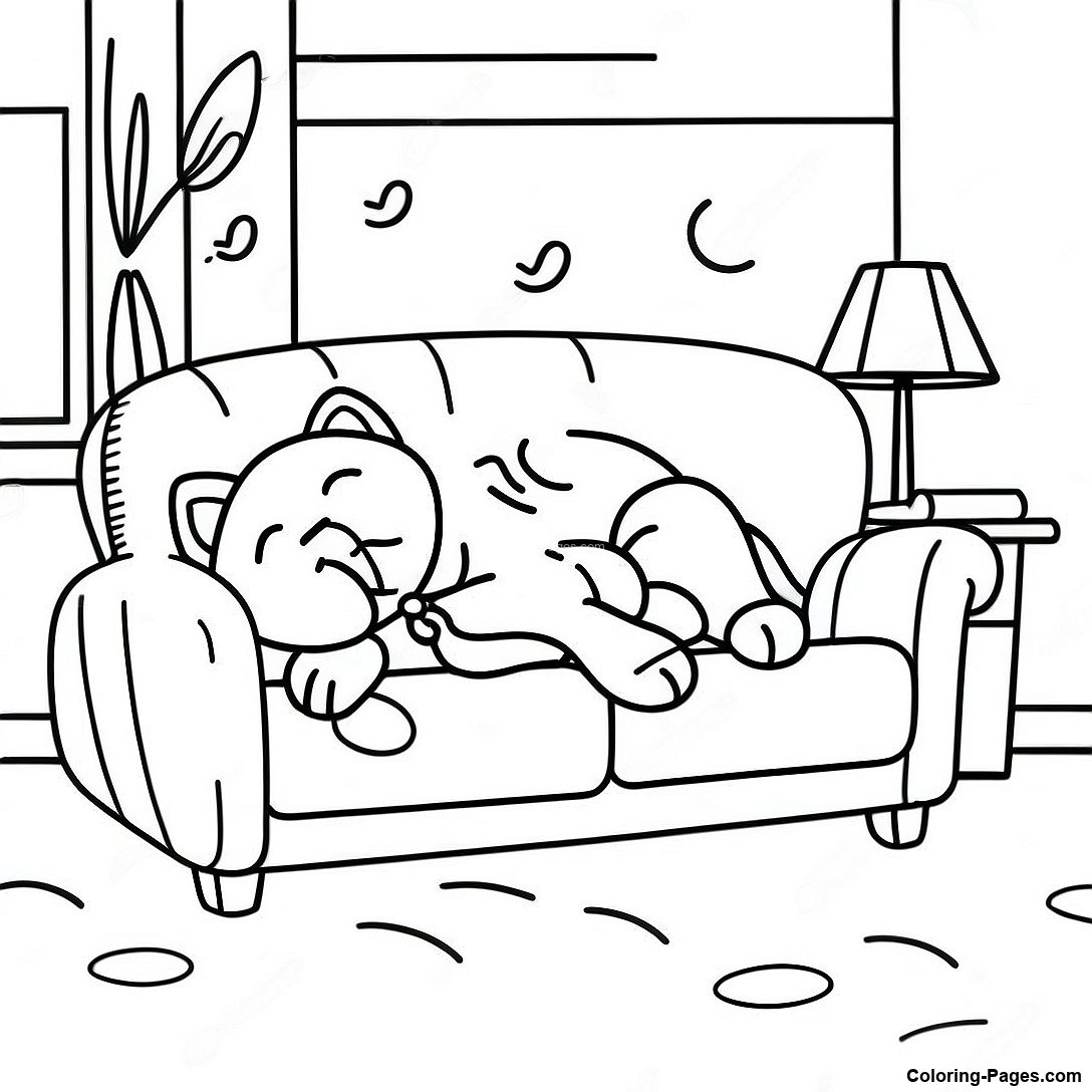 Download Printable PDF of Garfield Sleeping On A Couch Coloring Page
