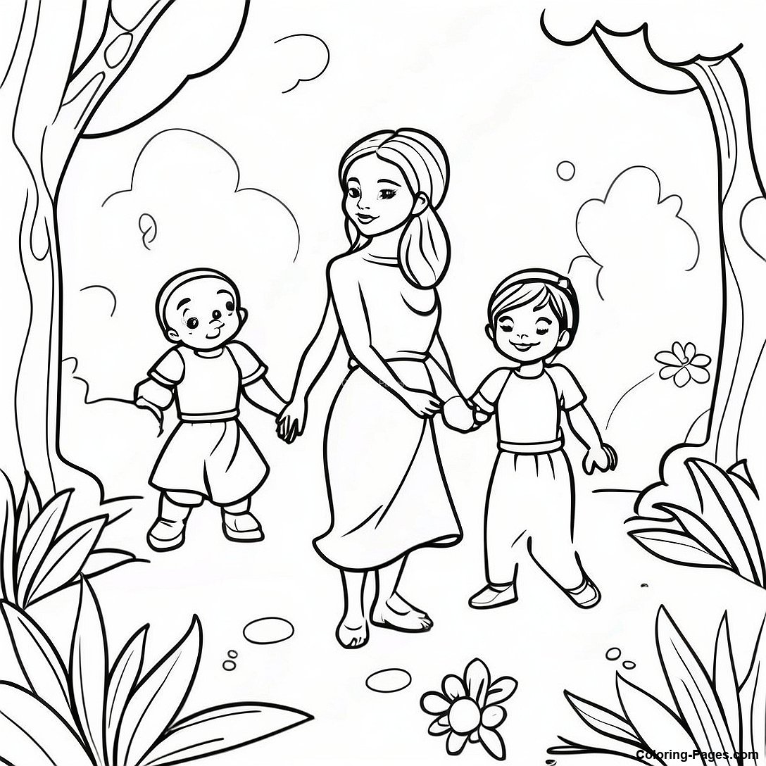 Na'vi Family in the Forest Coloring Page