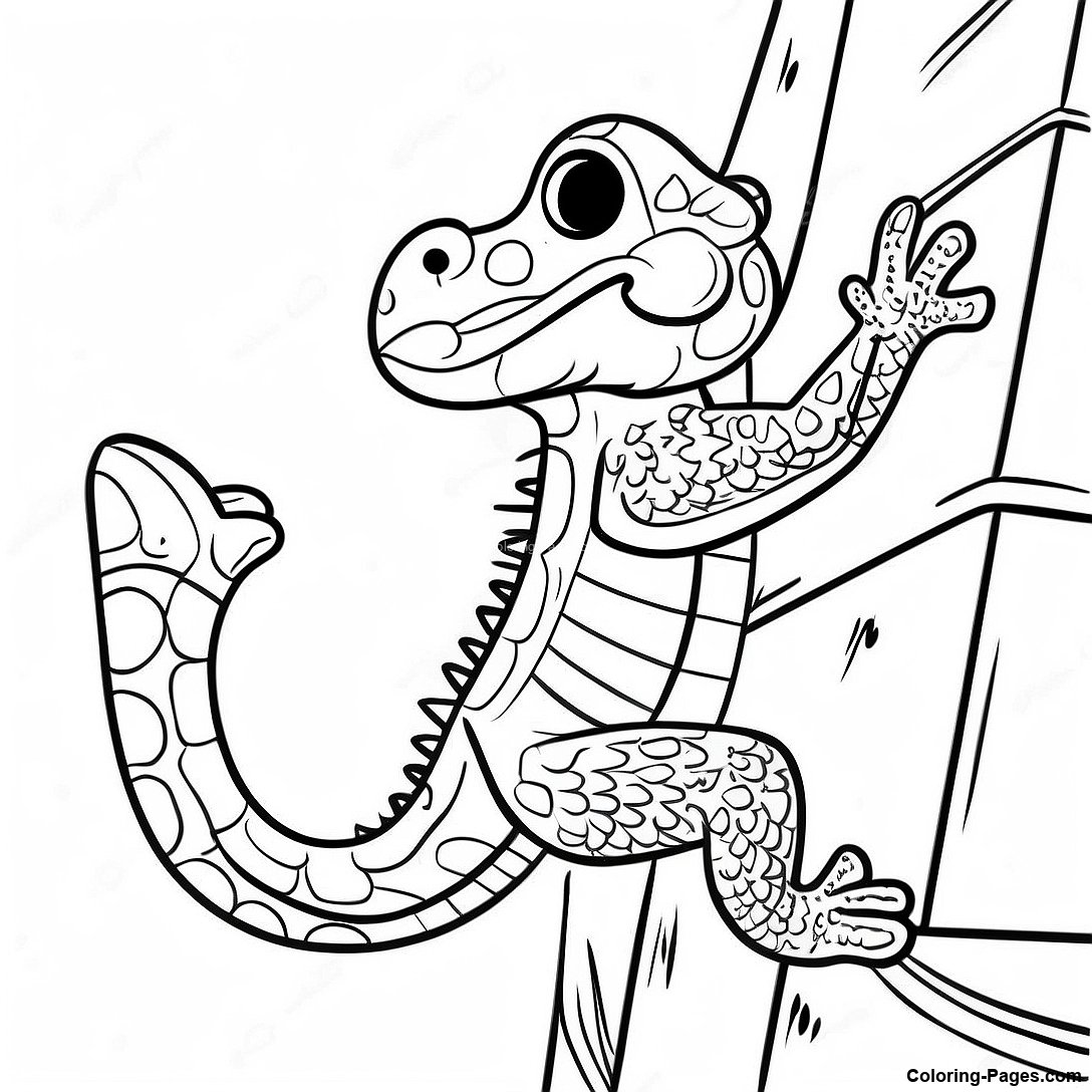 Gekko Climbing A Wall Coloring Page