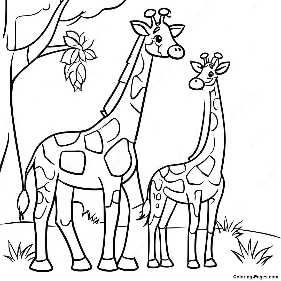 Download Printable PDF of Giraffe Family With Baby Coloring Page