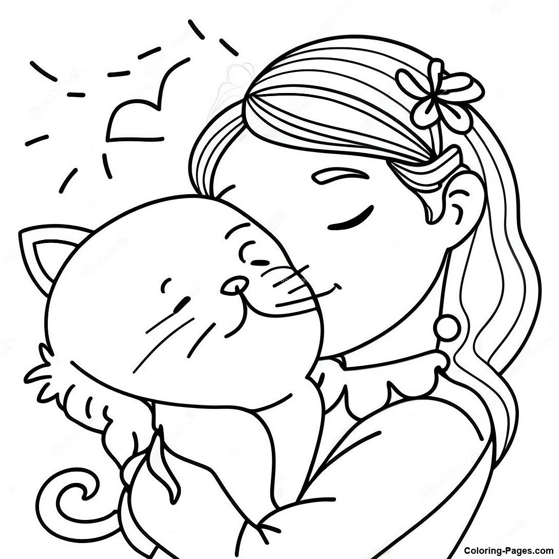 Download Printable PDF of Girl With A Sleeping Cat Coloring Page