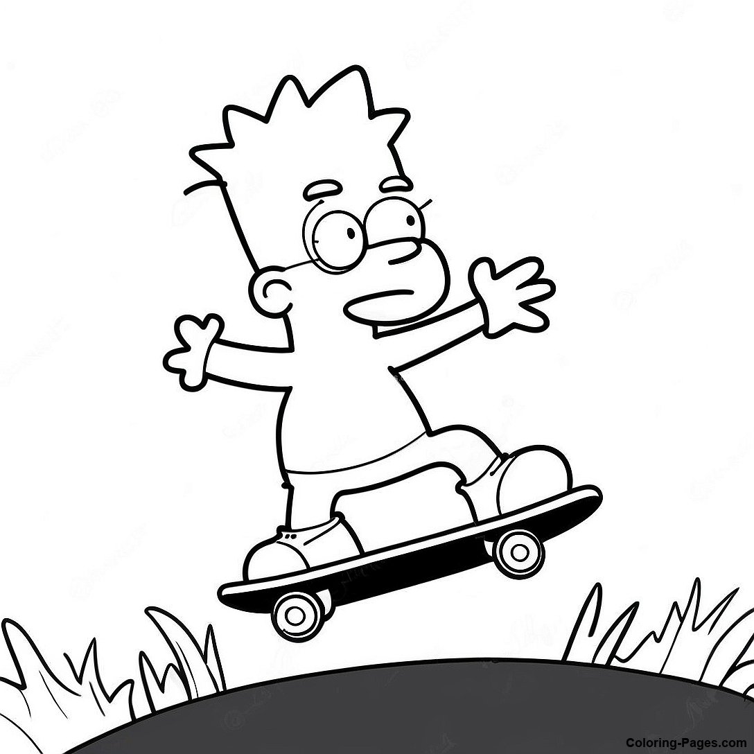 Download Printable PDF of Groovy Bart Simpson Skateboarding Coloring Page