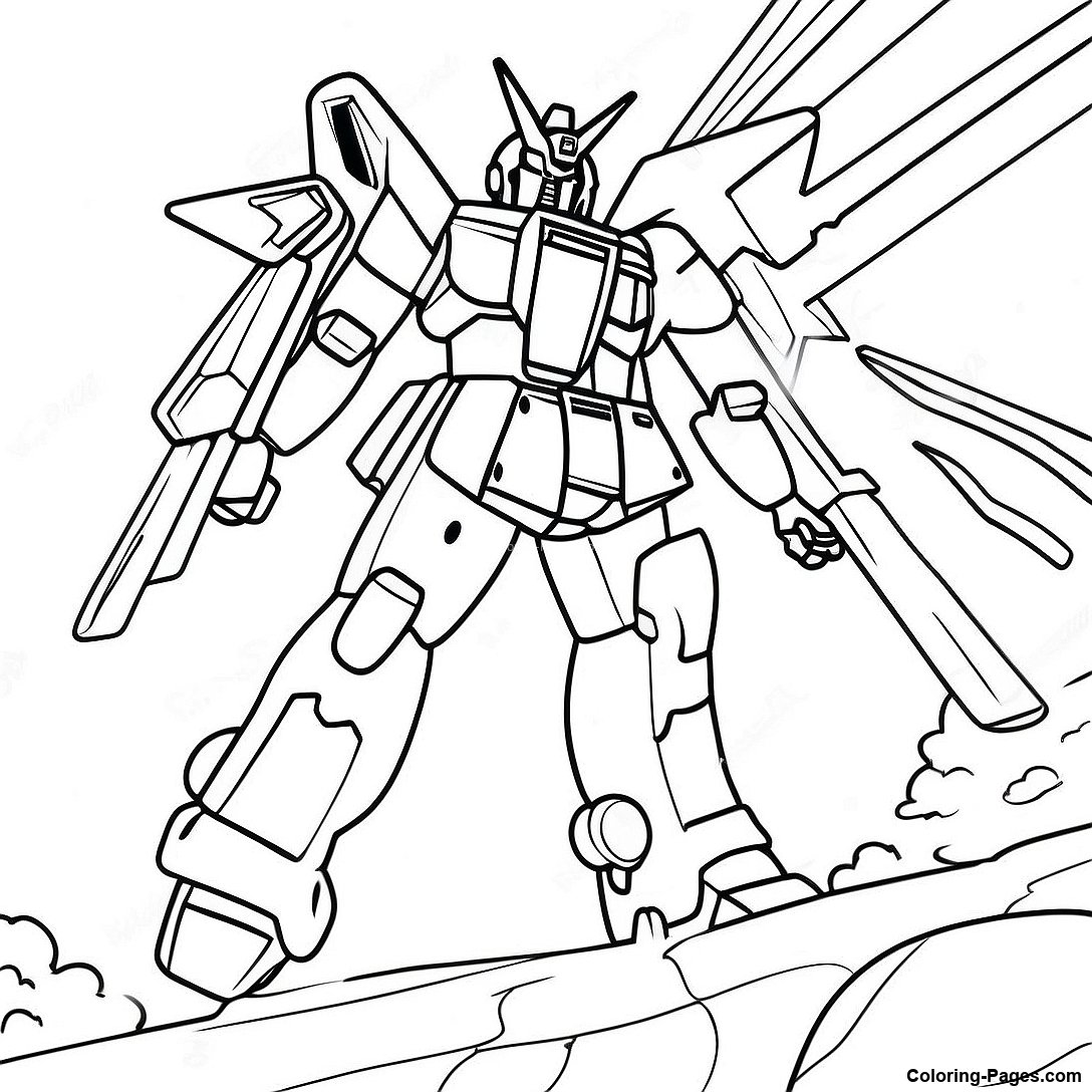 Download Printable PDF of Gundam Battle Scene Coloring Page