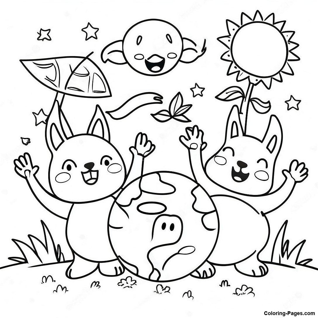 Download Printable PDF of Happy Animals Celebrating Earth Day Coloring Page