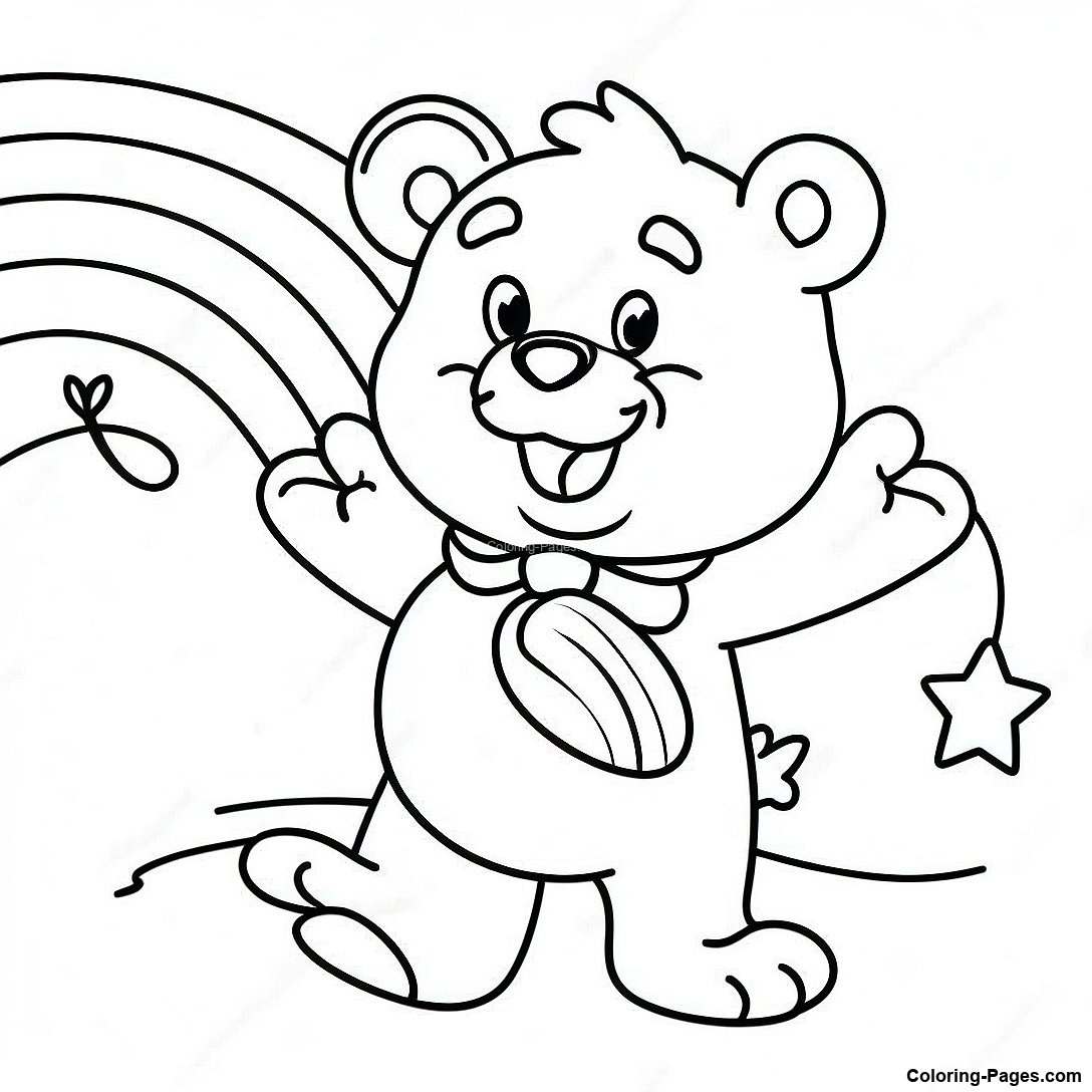 Download Printable PDF of Happy Care Bear Holding A Rainbow Coloring Page