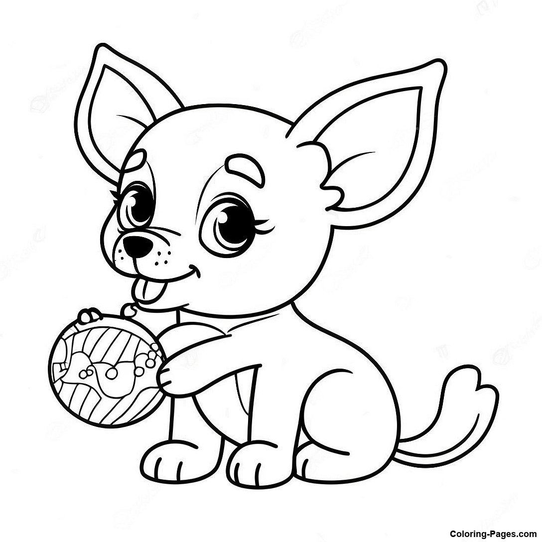Download Printable PDF of Happy Chihuahua With A Toy Coloring Page