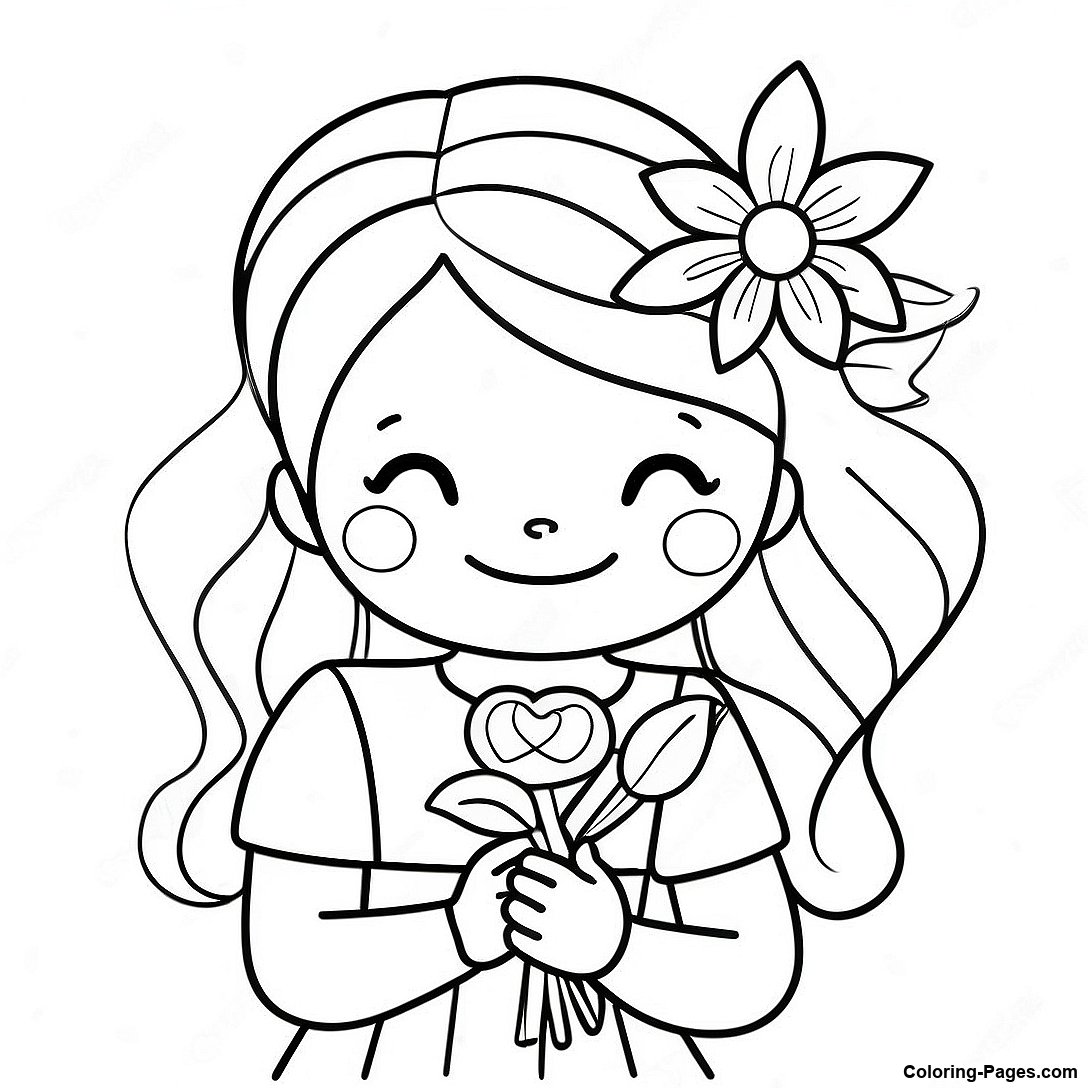 Happy Flower Girl With A Bouquet Coloring Page