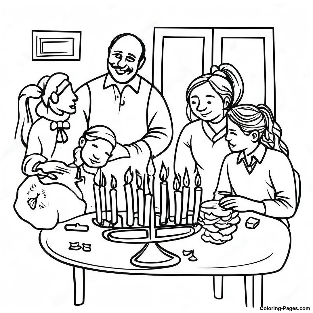 Download Printable PDF of Happy Hanukkah Family Gathering Coloring Page
