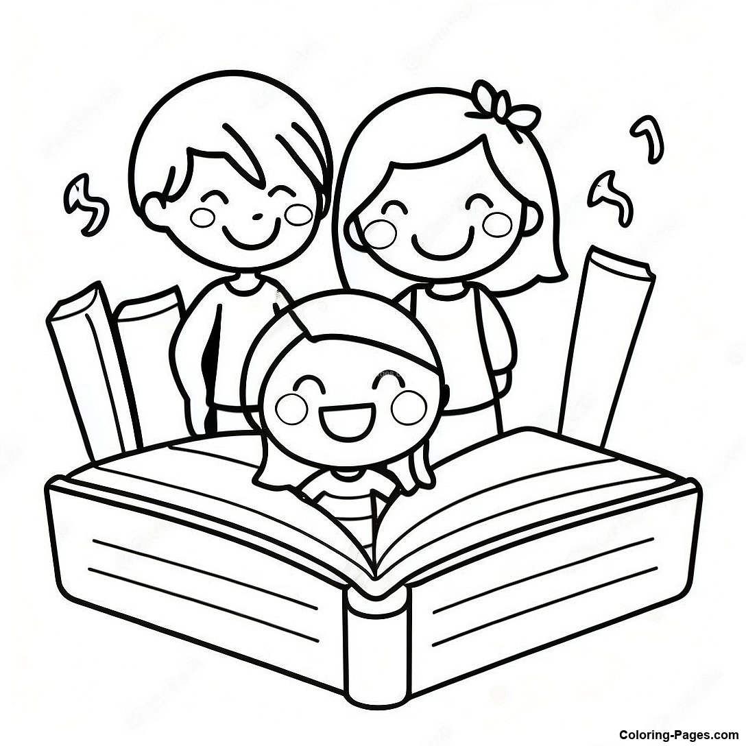 Download Printable PDF of Happy Kids Reading Coloring Page