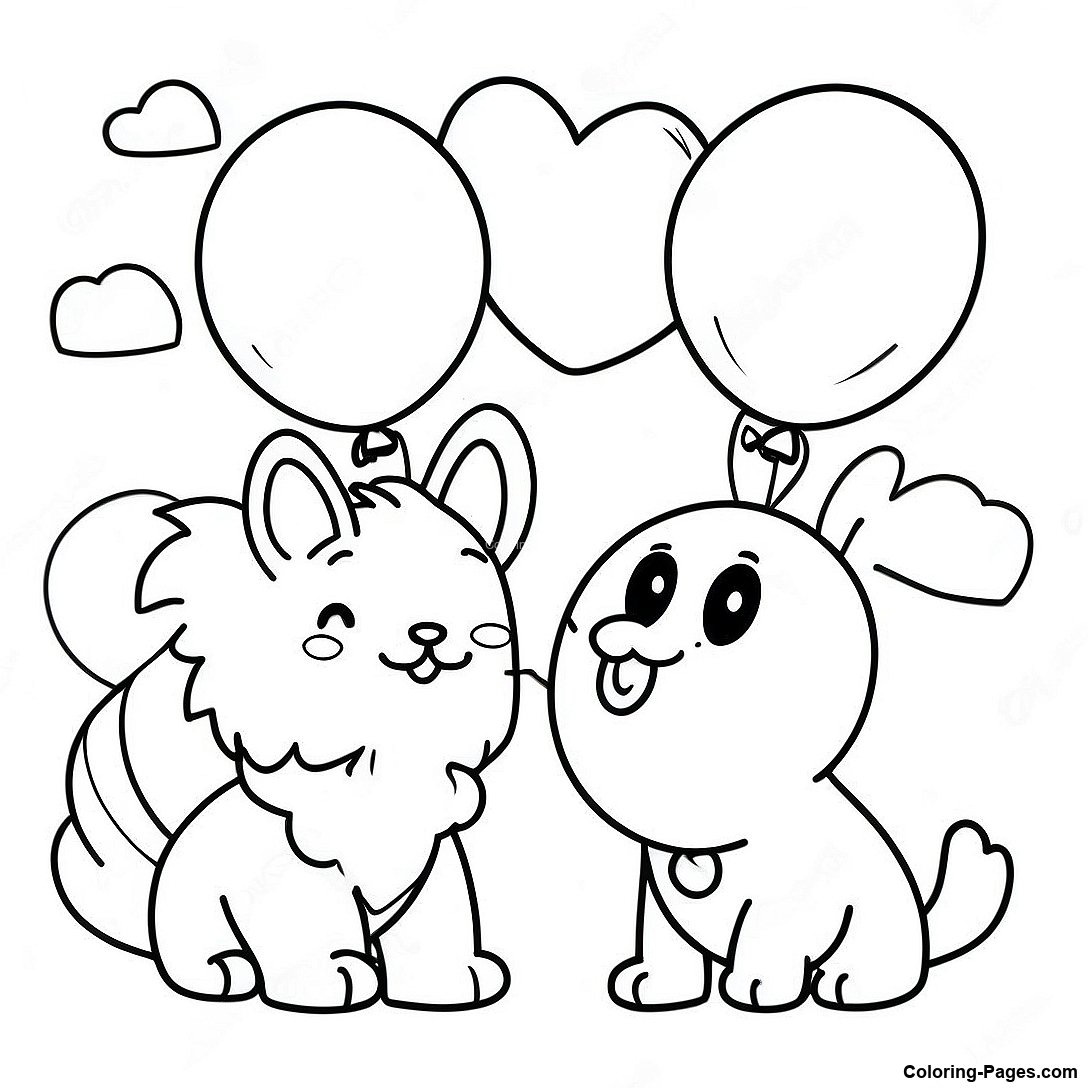 Download Printable PDF of Happy Lol Pets With Balloons Coloring Page