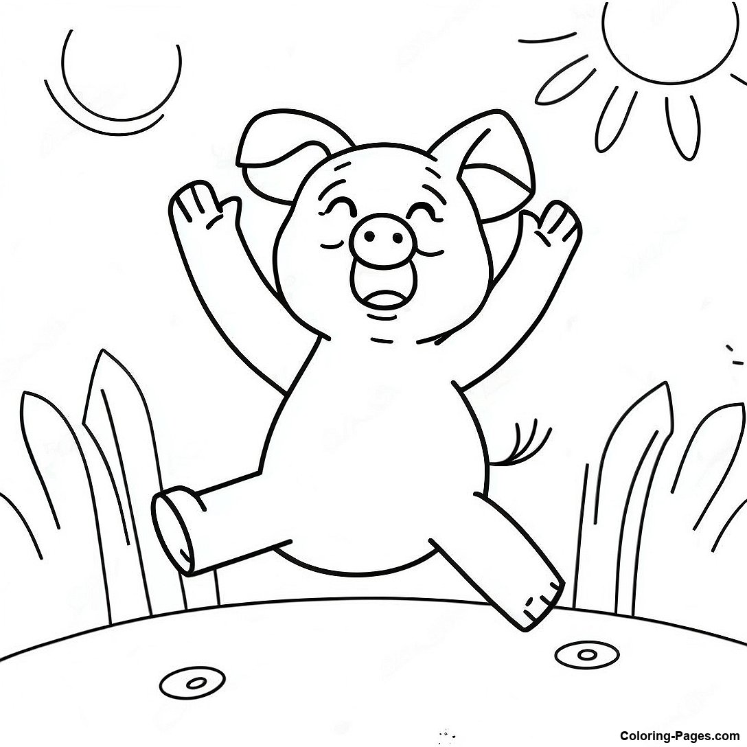 Happy Pig Dancing In Sunshine Coloring Page