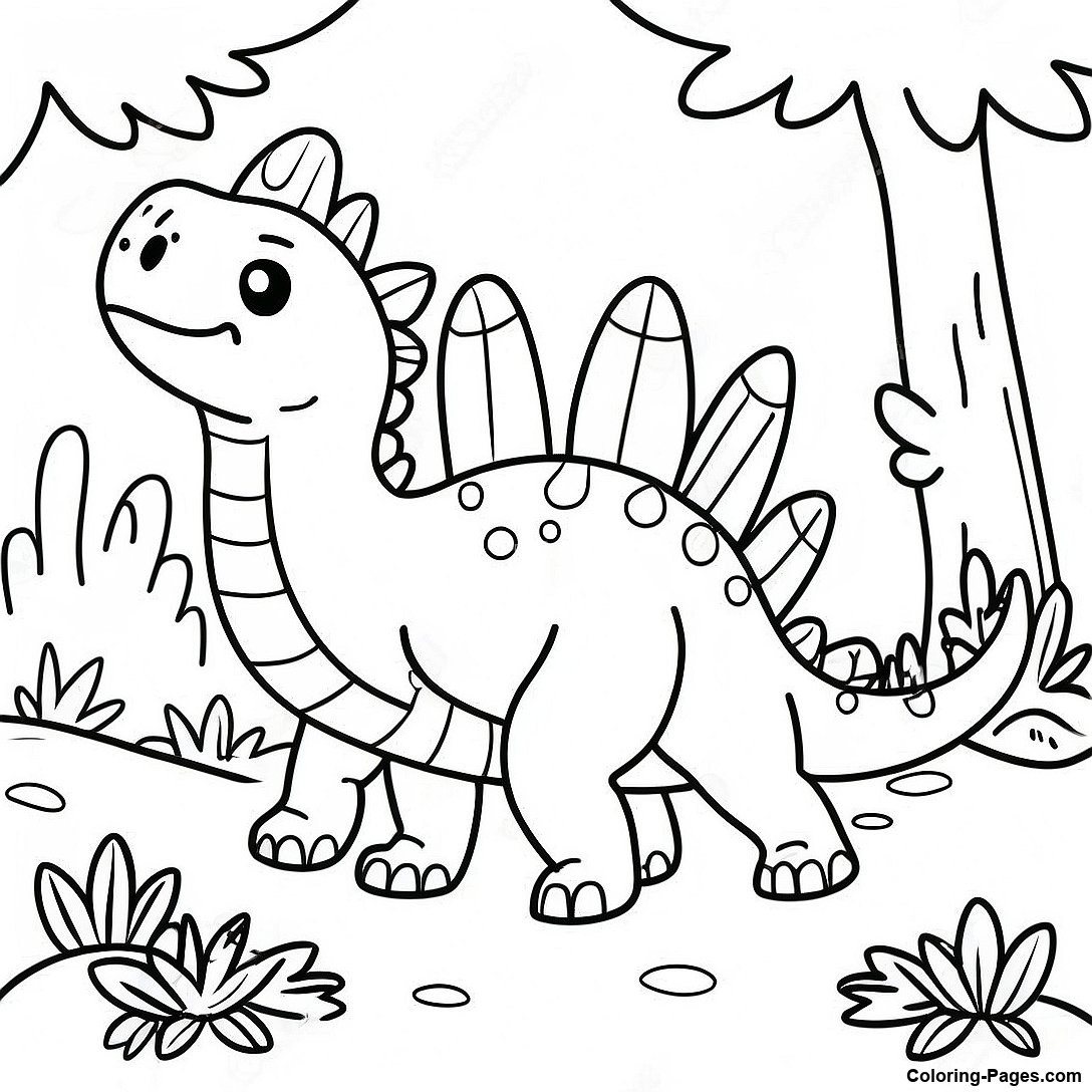 Happy Stegosaurus In A Forest Coloring Page